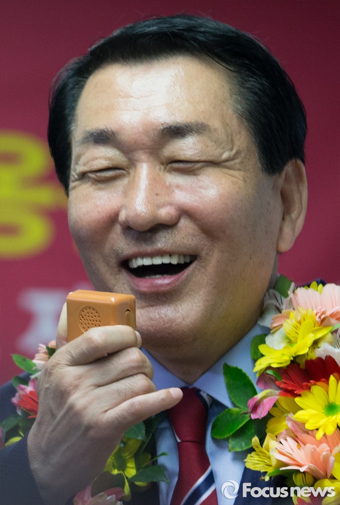 2위는 30.6%(3만9840표)를 차지한 새누리당 배준영 후보가 차지했다.(인천=포커스뉴스) 제20대 국회의원선거 인천 중구동구강화군옹진군 선거구에서 당선 된 안상수 무소속 후보가 미소 짓고 있다. 2016.04.14 오장환 기자