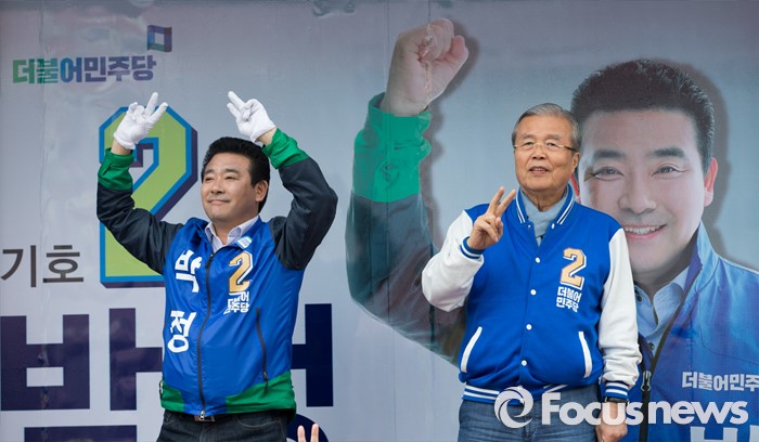 | △ 박정 후보 지원유세 나선 김종인 대표 |