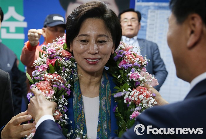 △1958년 인천 출생 △수도여자사범대 국문학과 중퇴·세종대 국문학·성공회대 사회복지학 석사 △서울시 여성위원, 국민고충처리위원회 위원, 대통령 직속 저출산고령사회위원, 대법원 사법제도개혁실무위원, 국가인권위원회 성차별조정위원, KBS이사, 여성부 정채자문위원 △전 민주통합당 최고위원, 19대 국회의원(비례)(서울=포커스뉴스) 14일 오전 서울 송파구에 위치한 선거사무실에서 남인순 더불어민주당 송파구병 후보가 지지자들에게 축하를 받고 있다. 2016.04.14 김유근 기자