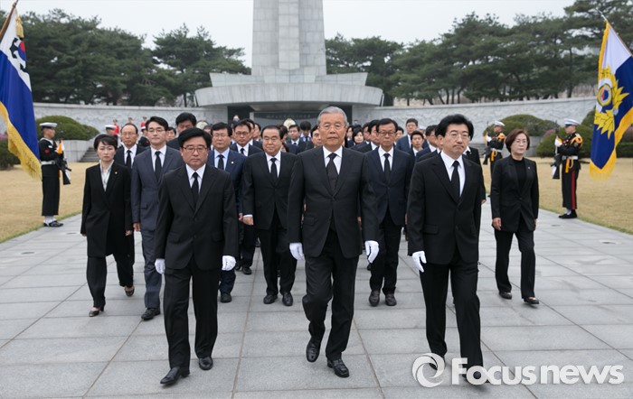 (서울=포커스뉴스) 14일 오전 동작구 국립서울현충원에서 김종인 더불어민주당 비대위 대표와 20대 총선 당선인들이 현충탑 참배를 마친 뒤 나서고 있다.