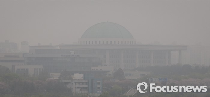 (서울=포커스뉴스) 제 20대 국회의원 선거가 끝난 14일 오전 서울 마포구 마포대교에서 안개에 둘러싸인 국회가 보이고 있다.