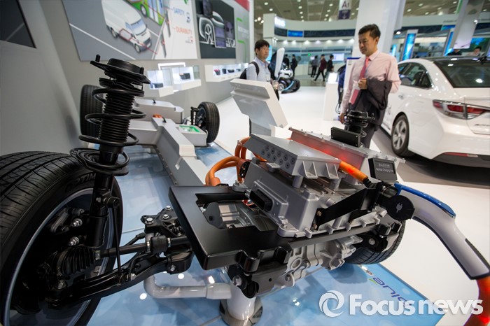 이에 따라, 부품업계들도 품질에 대한 무한책임 의식 강화와 원가절감, 패러다임 전환을 통한 지속적인 R&D 투자 확대를 바탕으로 미래 기술 경쟁력을 강화해야 한다고 지적했다. 이 이사장은 " 2,3차사와의 협력강화로 완성차의 동반성장 지원에 부응한 상생 파트너로서의 역할을 다함으로써 자동차산업의 경쟁력을 높여야 한다"고 역설했다.(서울=포커스뉴스) 서울 강남구 영동대로 코엑스에서 열린 '에너지 플러스 2015'에서 관람객들이 전기차 구조를 보고있다. 강진형 기자