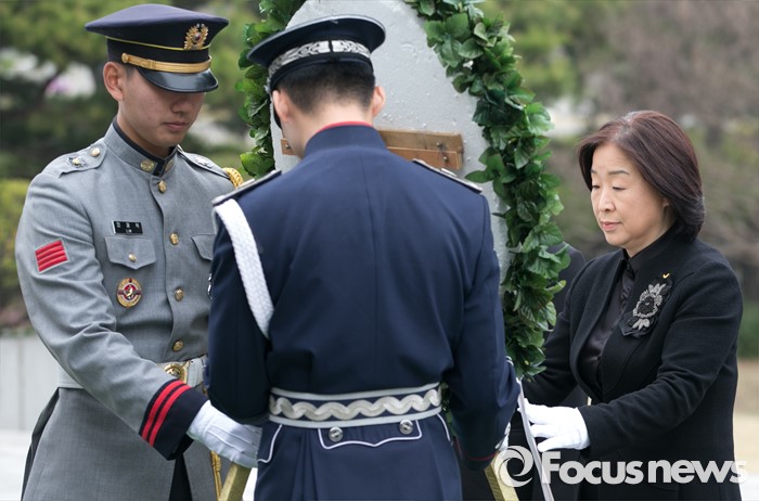 (서울=포커스뉴스) 심상정 정의당 상임대표와 20대 총선 비례대표 당선인들이 14일 오전 동작구 국립서울현충원에서 현충탑 참배를 하고 있다.