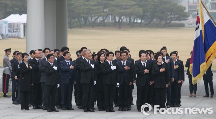 (서울=포커스뉴스) 14일 오전 동작구 국립서울현충원에서 김종인 더불어민주당 비대위 대표와 20대 총선 당선인들이 현충탑 참배 전, 국기에 대한 경례를 하고 있다.