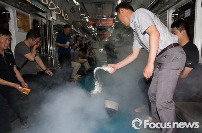 신용목 서울시 도시교통본부장은 "누구나 믿고 안전하게 이용할 수 있는 서울 지하철이 되도록 테러 예방에 최선을 다할 것"이라며 "테러 예방을 위해서는 직원의 감시만으로는 한계가 있는 만큼 시민들의 적극적인 협조를 당부한다"고 말했다.지난해 8월 19일 오후 서울 동작구 남부순환로 사당역에서 을지훈련의 일환으로 지하철 독가스 및 폭발물 테러 대비 훈련을 하고 있다. 2015.08.19 오장환 기자