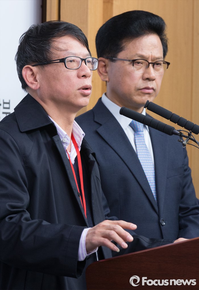 (세종=포커스뉴스) 왕웨이핑 세월호 인양 현장 총감독이 14일 오전 세종시 정부세종청사 해양수산부 기자실에서 세월호 인양 작업에 대해 설명하고 있다.