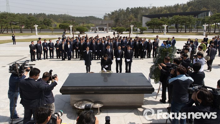 (광주=포커스뉴스) 14일 오후 광주 북구 국립5.18민주묘지에서 천정배 국민의당 공동대표를 비롯한 광주 지역 당선자들이 참배를 하고 있다.