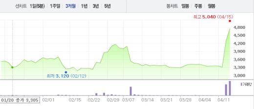 15일 오전 9시54분 현재 메디프론은 전일 대비 9.41%(405원) 상승한 4710원에 거래되고 있다. 전날에도 메디프론은 무려 가격제한폭인 29.86%까지 상승했다.