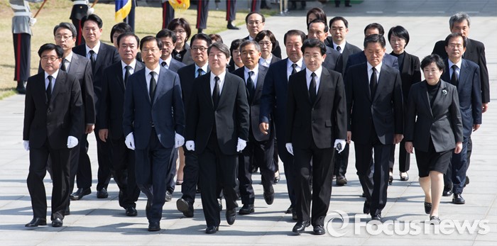 (서울=포커스뉴스) 안철수, 천정배 국민의당 상임공동대표와 20대 총선 당선인들이 15일 오전 서울 동작구 국립서울현충원에서 현충탑 참배를 위해 이동하고 있다.