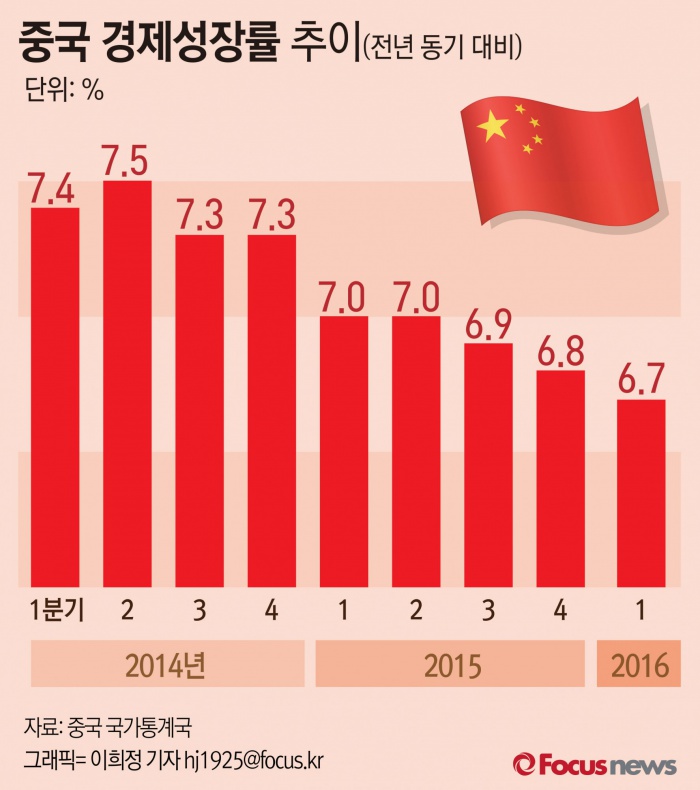 (서울=포커스뉴스) 중국 국가통계국은 15일(현지시간) 1분기 국내총생산(GDP)이 지난해 같은 기간 대비 6.7% 증가했다고 발표했다.