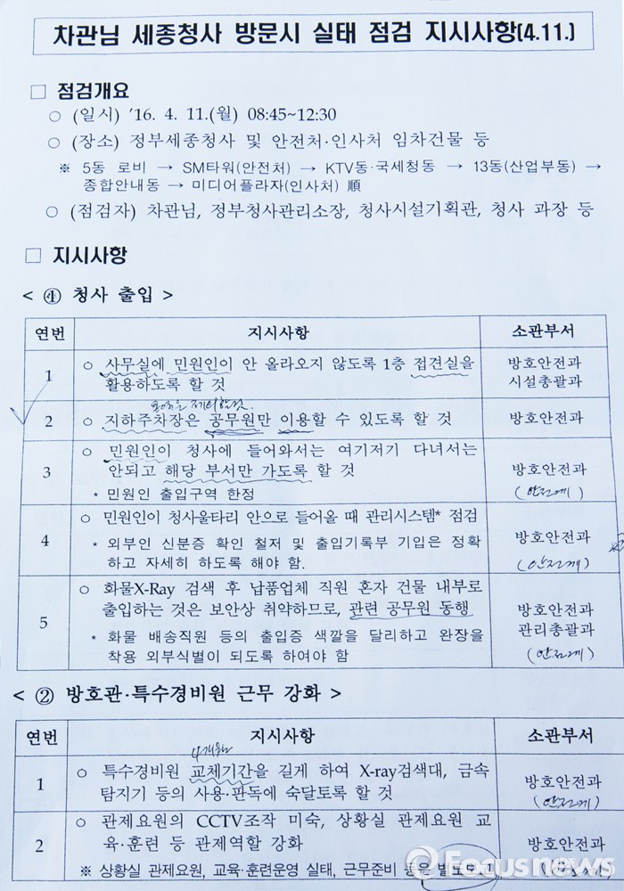 지난 11일 김성열 행정자치부 차관은 세종청사를 방문해 실태점검을 하고 지하 주차장은 공무원만 이용할 수 있다는 지시사항을 하달했다.