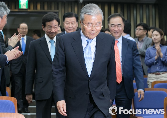 (서울=포커스뉴스) 김종인 더불어민주당 비대위 대표 겸 선대위원장과 선대위원들이 15일 오후 서울 여의도 국회에서 열린 20대 총선 중앙선대위 해단식에 당직자들로부터 박수를 받으며 참석하고 있다.