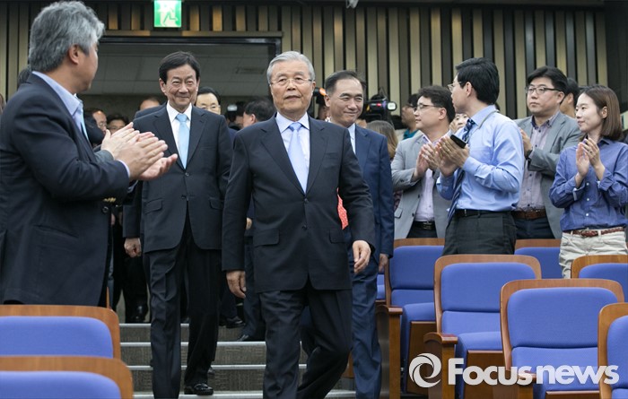 (서울=포커스뉴스) 김종인 더불어민주당 비대위 대표 겸 선대위원장과 선대위원들이 15일 오후 서울 여의도 국회에서 열린 20대 총선 중앙선대위 해단식에 당직자들로부터 박수를 받으며 참석하고 있다.