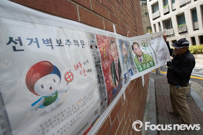 경찰 관계자는 "선거사범의 공소시효가 6개월에 불과해 현재 수사 중인 사건을 조속히 마무리하겠다"며 "당선 이후에도 답례 차원의 금품과 향응을 제공하는 행위가 있을 수 있어 단속을 강화할 계획"이라고 밝혔다.제20대 국회의원 선거가 끝난 14일 오후 서울 서초구 일대에서 서초3동 주민센터 직원이 벽보를 철거하고 있다. 2016.04.14 허란 기자
