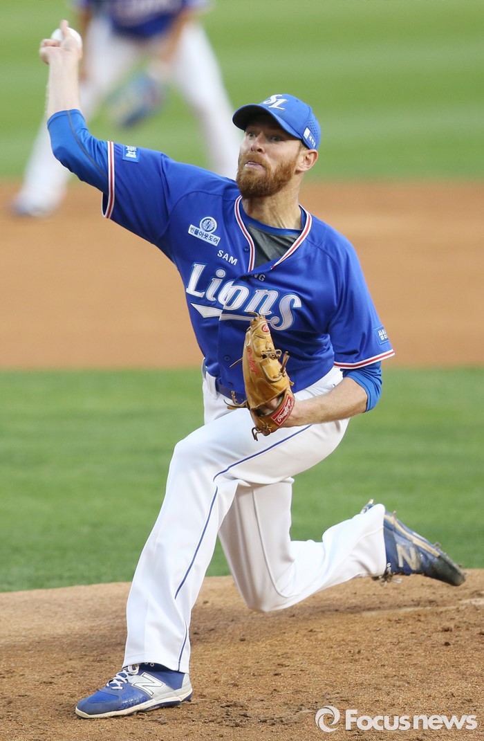 (서울=포커스뉴스) 15일 서울 잠실구장에서 열린 2016 프로야구 삼성-두산 경기에서 1회말 삼성 선발투수 벨레스터가 투구하고 있다.