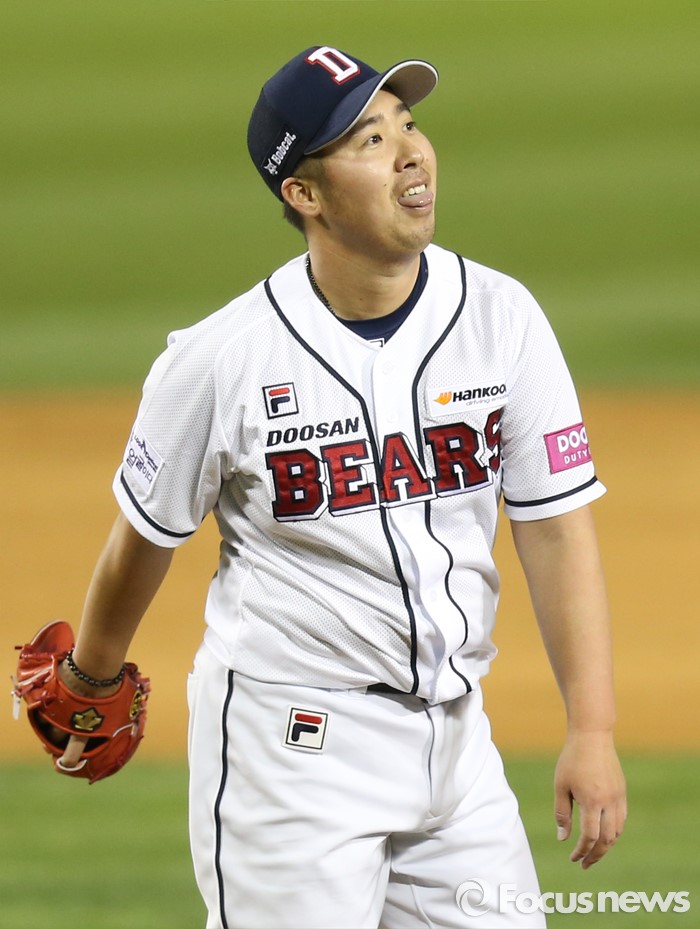 (서울=포커스뉴스) 15일 서울 잠실구장에서 열린 2016 프로야구 삼성-두산 경기 7회초 2사 1,2루에서 두산 투수 유희관이 삼성 대타 이지영을 볼넷으로 내보내며 아쉬워하고 있다.