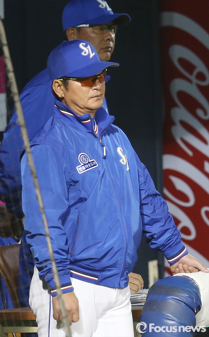 (서울=포커스뉴스) 15일 서울 잠실구장에서 열린 2016 프로야구 삼성-두산 경기에서 삼성 류중일 감독이 덕아웃에서 경기를 지켜보고 있다.