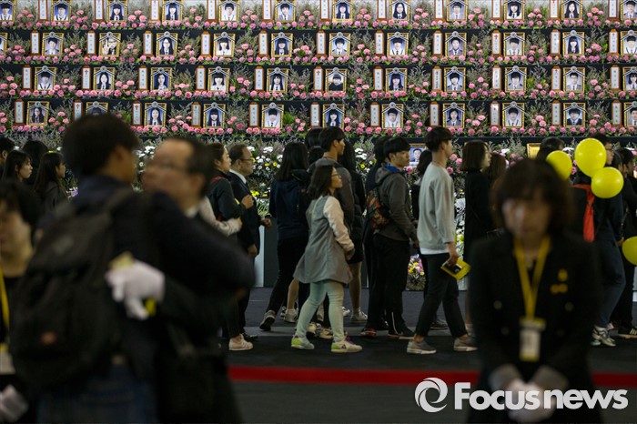 (안산=포커스뉴스) 세월호 참사 2주기인 16일 오전 경기도 안산시 단원구 화랑유원지에 마련된 합동분향소에 추모객 발길이 이어지고 있다.