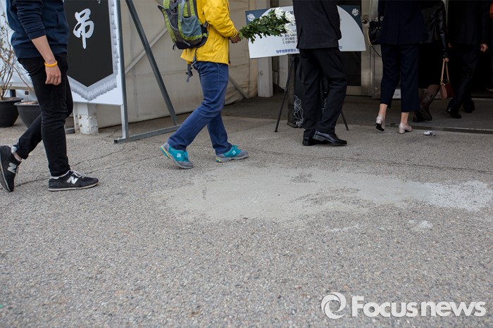(안산=포커스뉴스) 세월호 참사 2주기인 16일 오전 경기도 안산시 단원구 화랑유원지에 마련된 합동분향소에 추모객 발길이 이어지고 있다.