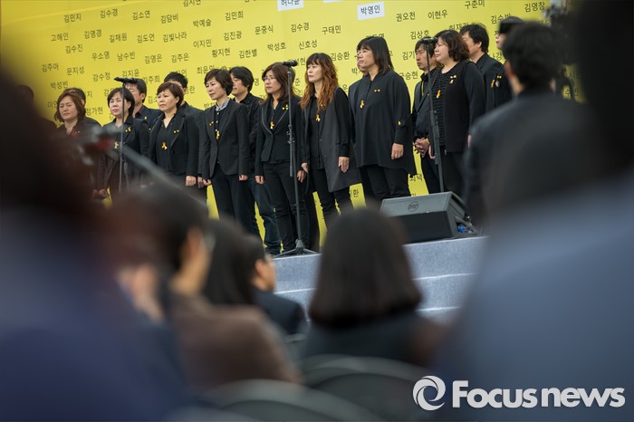 (안산=포커스뉴스) 16일 오전 경기도 안산시 단원구 화랑유원지에 마련된 합동분향소에서 열린 '세월호 참사 2년 기억식'에서 단원고 희생자 유가족으로 구성된 합창단이 추모노래를 부르고 있다.