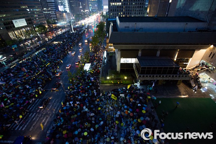 (서울=포커스뉴스) 16일 오후 서울 종로구 광화문 광장에서 열린 '세월호 참사 2주기 전국집중 범국민 추모문화제'에 참가한 유가족 및 시민들이 세월호 참사 진상규명을 촉구 하고 있다.