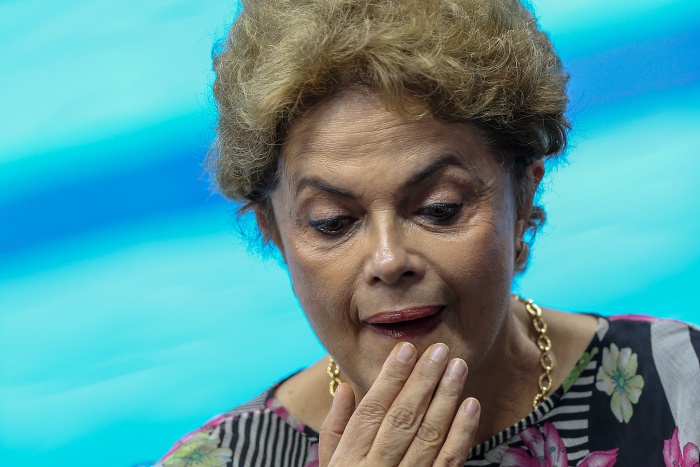 호세프 대통령은 경제 적자를 숨기기 위해 브라질 회계 장부를 조작했다는 혐의로 탄핵 위기에 처했다. 정치적 동반자인 루이스 이나시우 룰라 다 시우바 전 대통령의 부패 스캔들로 인한 체포를 막기 위해 장관으로 임명한 정황이 녹음된 통화 내역이 폭로돼 반대 여론도 격화된 상태다.브라질 하원에서 지우마 호세프 대통령 탄핵 의결안 표결이 진행 중이다. (Photo by Buda Mendes/Getty Images) 2016.04.12 ⓒ게티이미지/이매진스