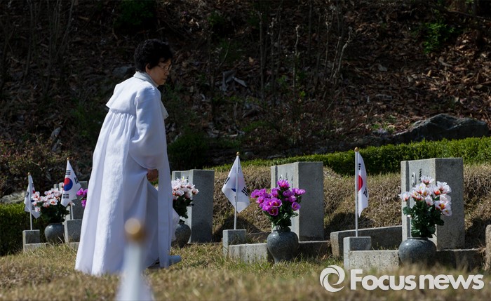 (서울=포커스뉴스) 4·19 혁명 56주기를 하루 앞둔 18일 오전 서울 강북구 국립4.19 민주묘지를 찾은 유가족들이 희생자의 묘소로 향하고 있다.