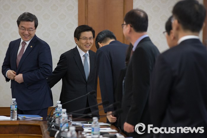 (서울=포커스뉴스) 황교안 국무총리가 18일 오전 서울 종로구 정부서울청사에서 도시재생특별위원회 회의에 참석해 들어서고 있다.