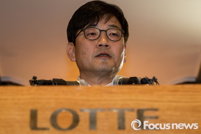 (서울=포커스뉴스) 김종인 롯데마트 대표가 18일 오전 서울 중구 롯데호텔앤리조크 서울에서 열린 가습기 살균제 사망사건 관련 기자회견에서 피해 보상기구 대책위원회 설치 등을 주요 내용으로 하는 사과문을 발표하고 있다.