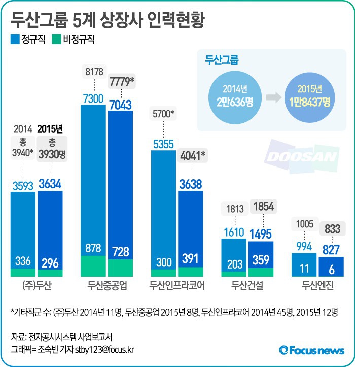 [그래픽] 두산그룹 5계 상장사 인력현황