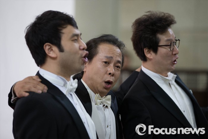 (서울=포커스뉴스) 18일 오전 서울 서초구 중앙지방법원에서 보헤미안 싱어즈가 '시민과 함께하는 음악회'에 참석해 공연을 하고 있다.