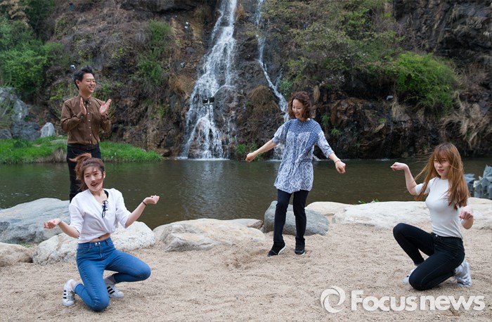 (서울=포커스뉴스) 제20대 국회의원 선거에서 당선된 김영호 더불어민주당 서대문을 당선자가 18일 오후 서울 서대문구 홍제천 폭포마당에서 입수 전 부인 정현경 씨와 픽미댄스를 추고 있다. 김 당선자는 서대문을 지역 투표율 60% 달성 시 홍제천 입수, 아내는 픽미댄스를 추겠다고 약속 하였다.