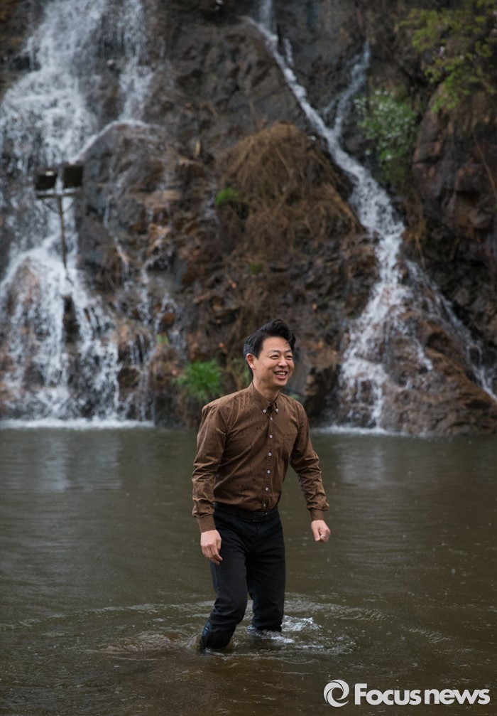 (서울=포커스뉴스) 제20대 국회의원 선거에서 당선된 김영호 더불어민주당 서대문을 당선자가 18일 오후 서울 서대문구 홍제천 폭포마당에 입수 하고 있다. 김 당선자는 서대문을 지역 투표율 60% 달성 시 홍제천 입수, 아내는 픽미댄스를 추겠다고 약속 하였다.