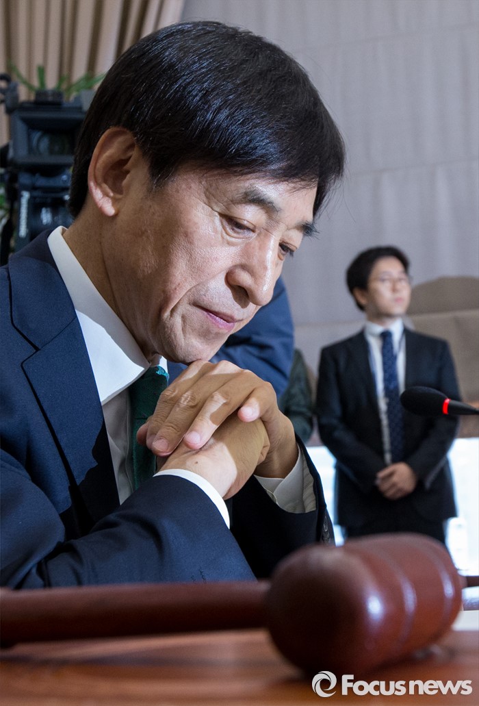 (서울=포커스뉴스) 이주열 한국은행 총재가 19일 오전 서울 중구 남대문로 한국은행 본관에서 열린 금융통화위원회의에 참석해 생각에 잠겨 있다.