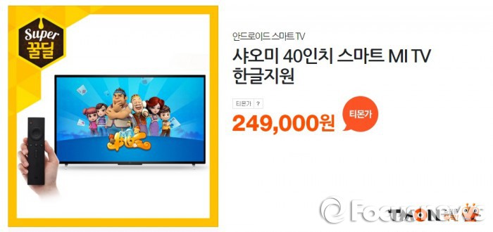 (서울=포커스뉴스) 티몬은 한 달 전 48만9000원에 첫 선을 보인 샤오미 40인치 스마트TV(MI TV2)를 19일 단 하루 동안 기존가의 반값인 24만9000원에 판매한다.