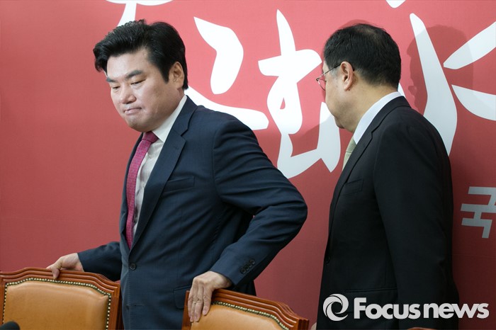 (서울=포커스뉴스) 원유철(왼쪽) 새누리당 원내대표와 김정훈 정책위의장이 19일 오전 서울 여의도 국회에서 열린 원내대표단회의에 참석하고 있다.