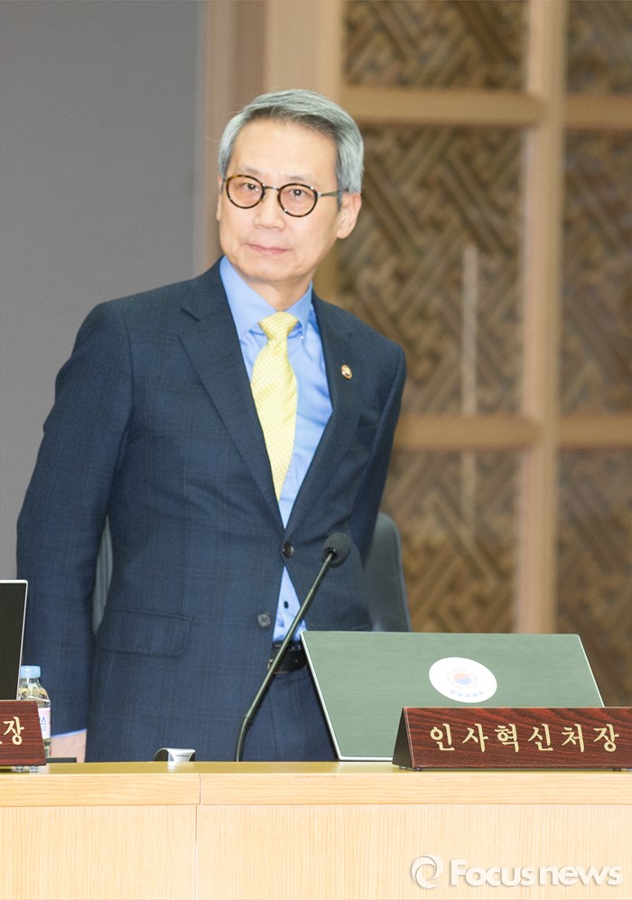 (세종=포커스뉴스) 이근면 인사혁신처장이 19일 오전 세종시 정부세종청사 국무회의장에서 서울-세종 영상회의로 열린 국무회의에 참석하고 있다.