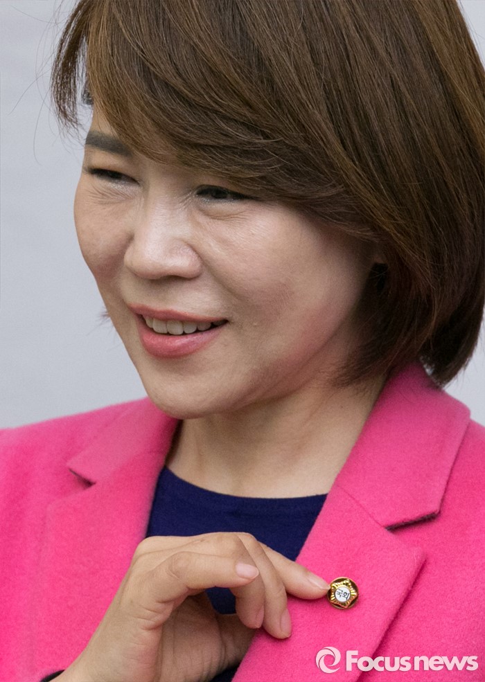 (서울=포커스뉴스) 19일 오후 서울 여의도 국회 본청에 마련된 20대 국회 개원종합지원실에서 전현희 더불어민주당 강남을 당선인이 국회의원 배지를 달고 포즈를 취하고 있다.