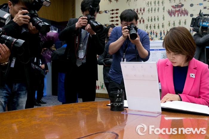 | △ 20대 국회의원 등록하는 전현희 당선인 |