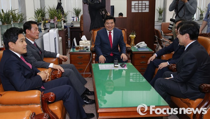 (서울=포커스뉴스) 원유철 새누리당 원내대표가 19일 오후 서울 여의도 국회에서 원 원내대표의 비상대책위원회 체제에 반대 입장을 가진 의원 및 당선인으로 구성된 당 혁신모임(가칭) 소속 의원들과 면담을 하고 있다.