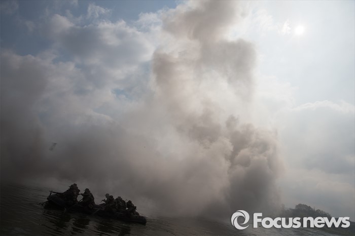 도하하는 장병들