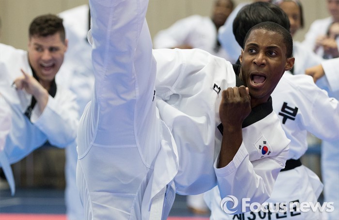 (서울=포커스뉴스) 19일 오후 서울 용산구 국방부 다목적홀에서 한국문화 체험행사에 참가한 주한미군 장병들이 태권도를 배우고 있다.