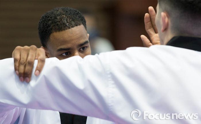 (서울=포커스뉴스) 19일 오후 서울 용산구 국방부 다목적홀에서 한국문화 체험행사에 참가한 주한미군 장병들이 태권도를 배우고 있다.