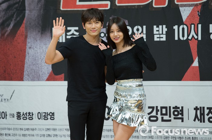 (서울=포커스뉴스) 19일 오후 서울 SBS 목동사옥에서 열린 SBS 드라마 스페셜 '딴따라' 제작발표회에 참석한 배우 지성(왼쪽)과 혜리가 포토타임을 갖고 있다.