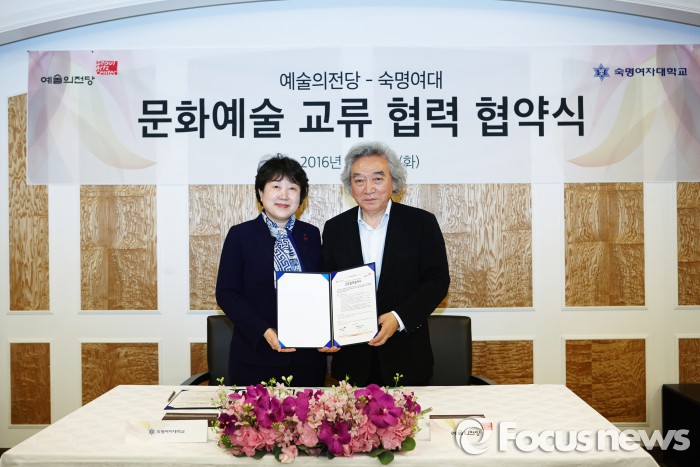 이날 양측은 △공연, 전시, 강연회 등 문화예술행사 성공 개최 위한 홍보·진행 △문화예술분야 교육과정 개발 △사회공헌사업을 통한 문화저변 확대 △기관 종사자, 학생, 수강생 등의 문화복지 증진을 위한 혜택 제공 △숙명여대 예술전공생들의 공연제작 및 예술경영 부문 실습기회 마련 등을 함께 추진하기로 했다.