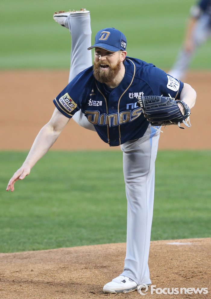 (서울=포커스뉴스) 19일 서울 잠실구장에서 열린 2016 프로야구 NC-LG 경기에서 1회말 NC 선발투수 해커가 투구하고 있다.