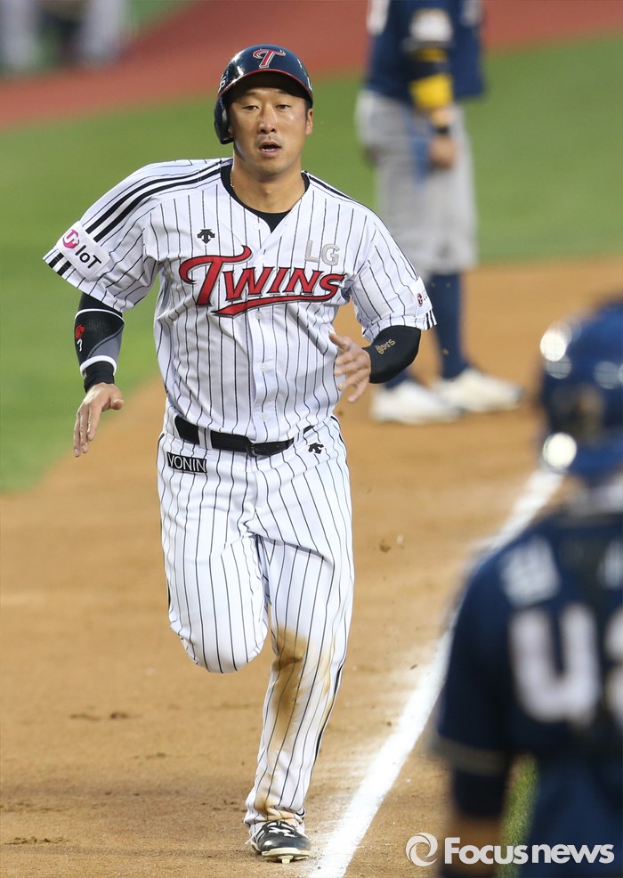 (서울=포커스뉴스) 19일 서울 잠실구장에서 열린 2016 프로야구 NC-LG 경기 2회말 1사 2,3루에서 LG 채은성의 중견수 희생플라이때 3루주자 이병규가 홈인하고 있다.
