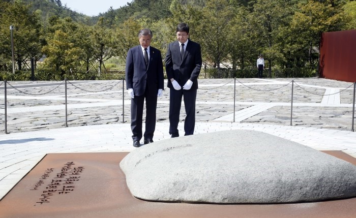 노무현 전 대통령 묘역 참배하는 문재인-김홍걸