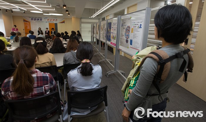 (세종=포커스뉴스) 20일 오전 세종시 조치원읍 세종창조경제혁신센터에서 열린 창업여풍 세 번째 프로포즈 여성가족부장관과 함께하는 토크콘서트에서 참석자가 아이를 안고 토크콘서트를 바라보고 있다.