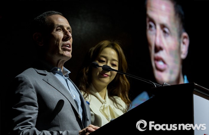 (서울=포커스뉴스) 20일 오전 서울 중구 그랜드 앰버서더 호텔에서 열린 '올레tv 드림웍스 채널 출시' 기자간담회에 참석한 에릭 엘렌보겐 드림웍스 해외TV사업 대표가 인사말을 하고 있다.